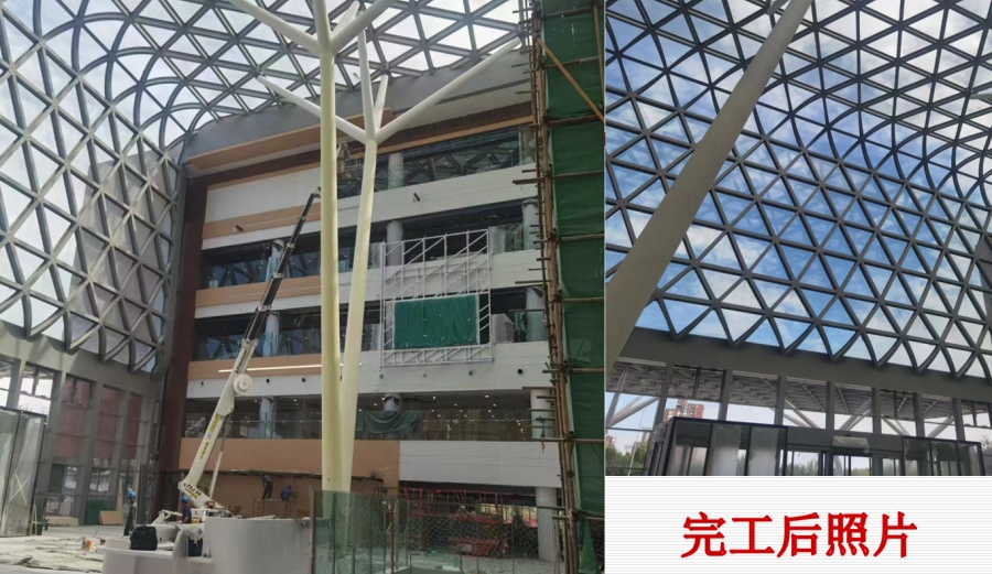主要項目內(nèi)容:本工程為北京市朝陽醫(yī)院新建院區(qū),在主語阿樓門診主要特點為屋面龍骨均為鋁合金H型材料,鋁合金型材連接采用半剛節(jié)點,節(jié)點采用高強huck合計材質(zhì)張拉螺栓連接。