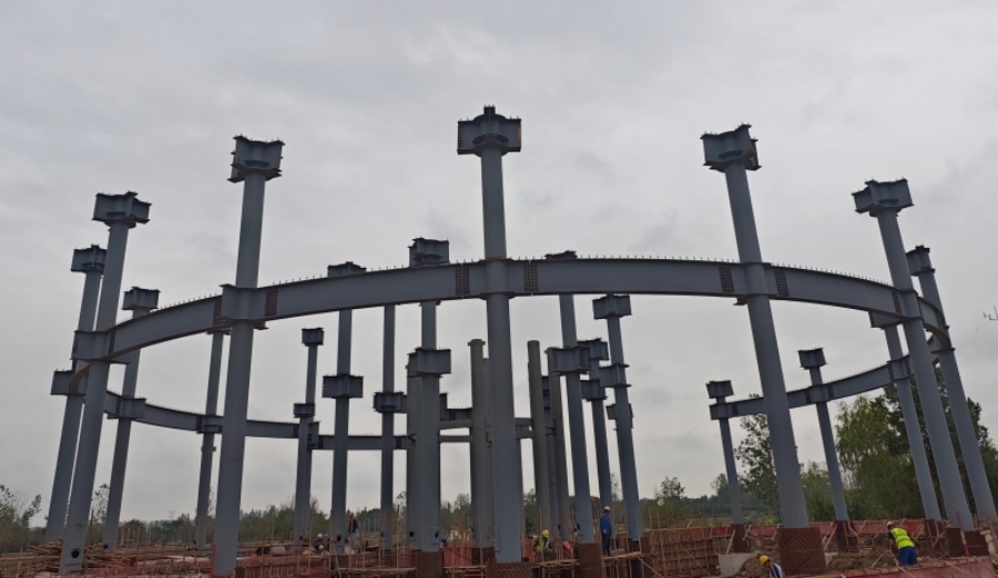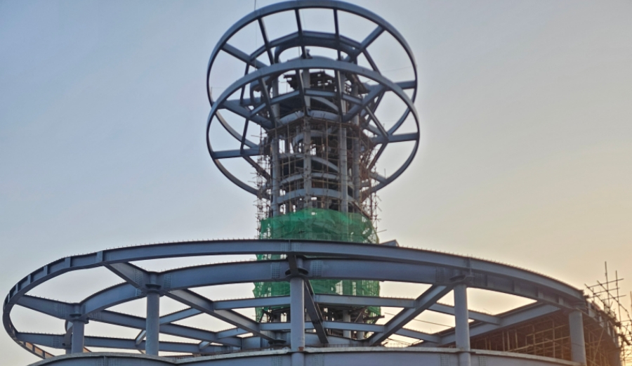 當(dāng)前為在施狀態(tài),主要內(nèi)容為鋼構(gòu)主體、幕墻、雨棚、觀景臺(tái)、及咖啡廳屋等。